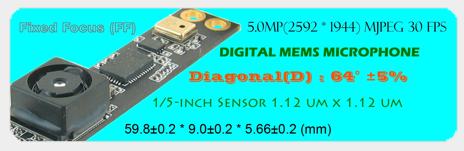 1. Sensor: 1/5-inch 5.0M pixel (2592 * 1944) CMOS Image Sensor.
